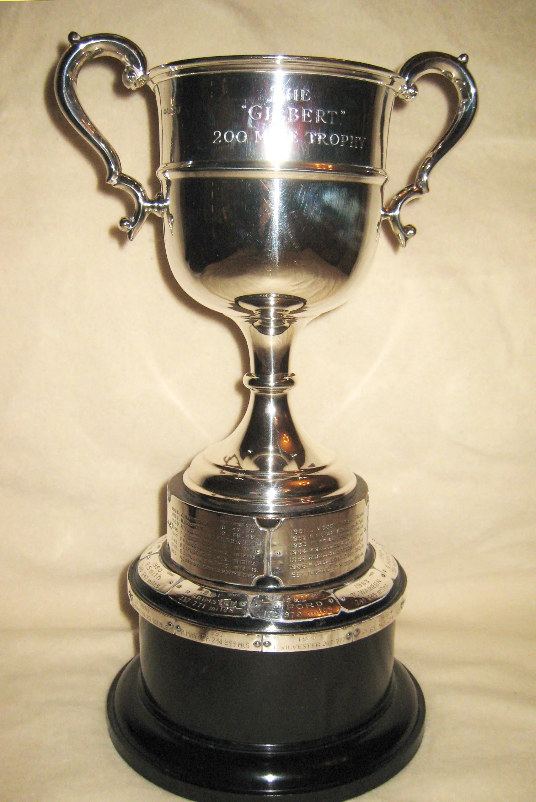 In 1937, the Racing Committee sent their thanks to Messrs. F. and J. Gilbert for the Trophies that they had presented to us for the 200 mile Individual Time Trial.
